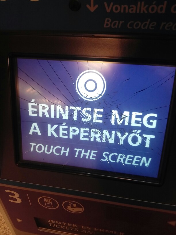 Már olyan elméletet is hallottunk, hogy ez egy UX, azaz felhasználói élmény kérdés az új automatáknál. Miszerint az van rájuk írva nagybetűvel, hogy “Érintse meg a képernyőt”, és egyesek ezt félreértik. Valószínű, hogy az automaták lassúsága, akadozása és a félreértés együtt adja ki azt, ami alább látható.