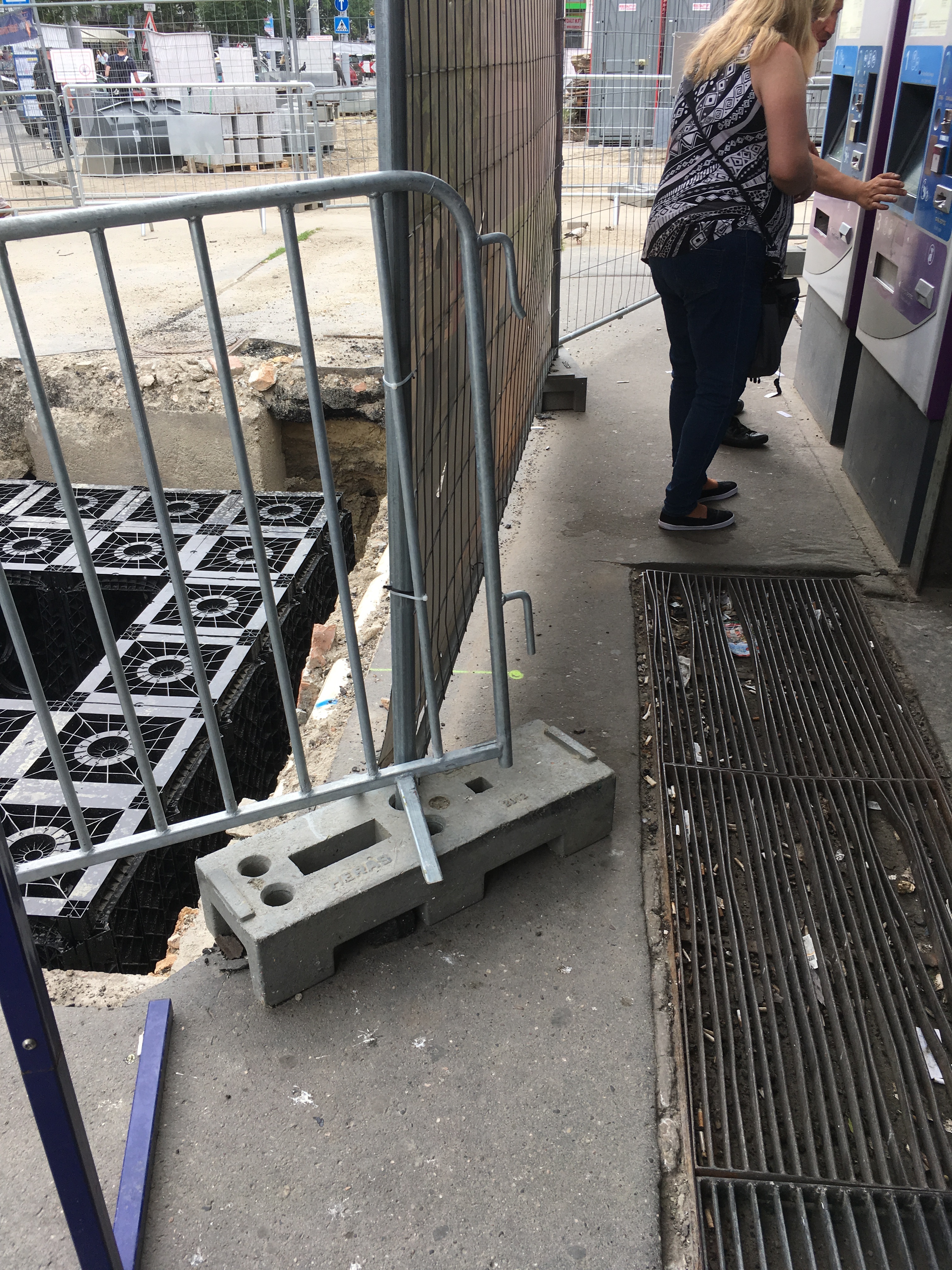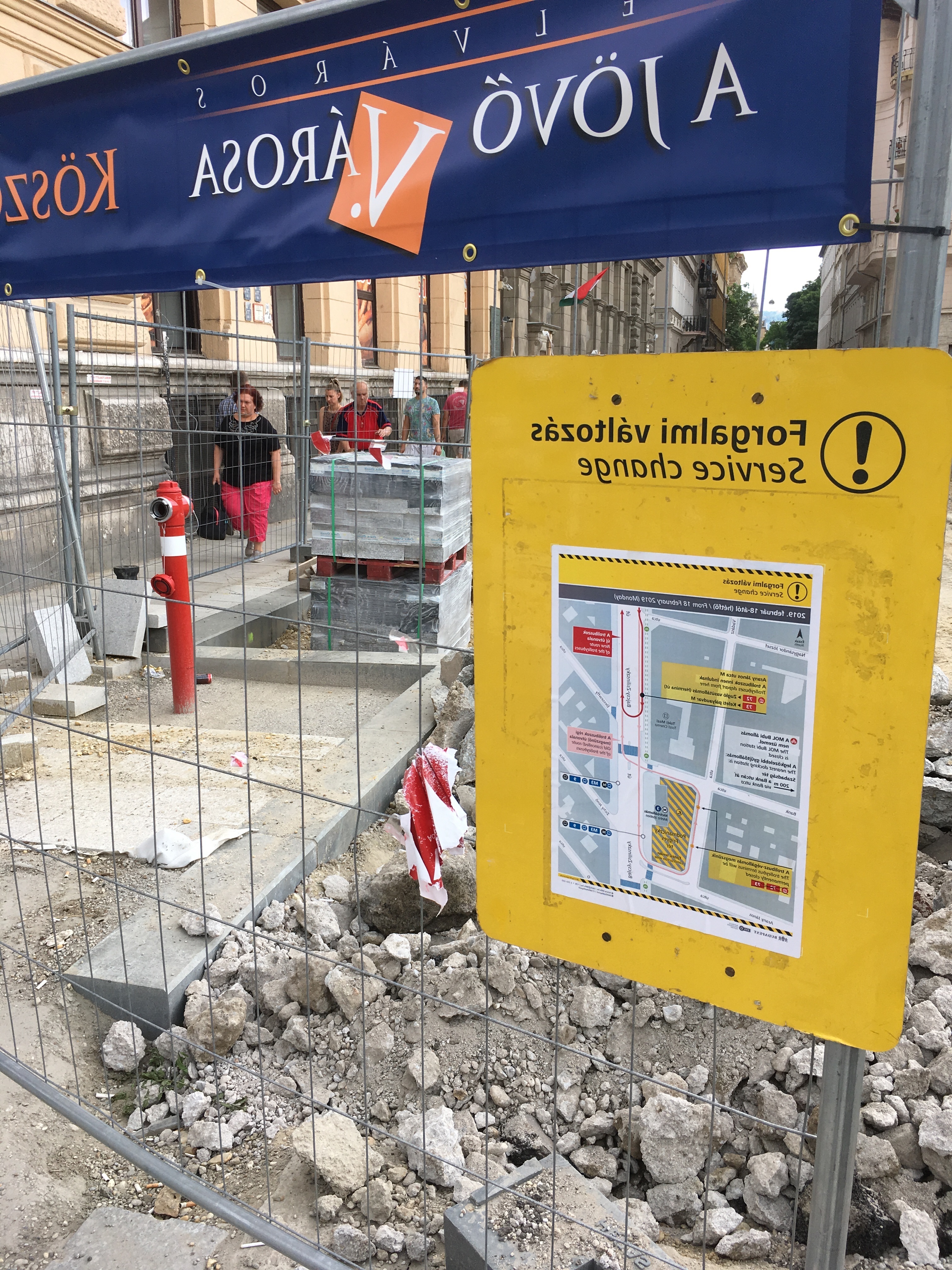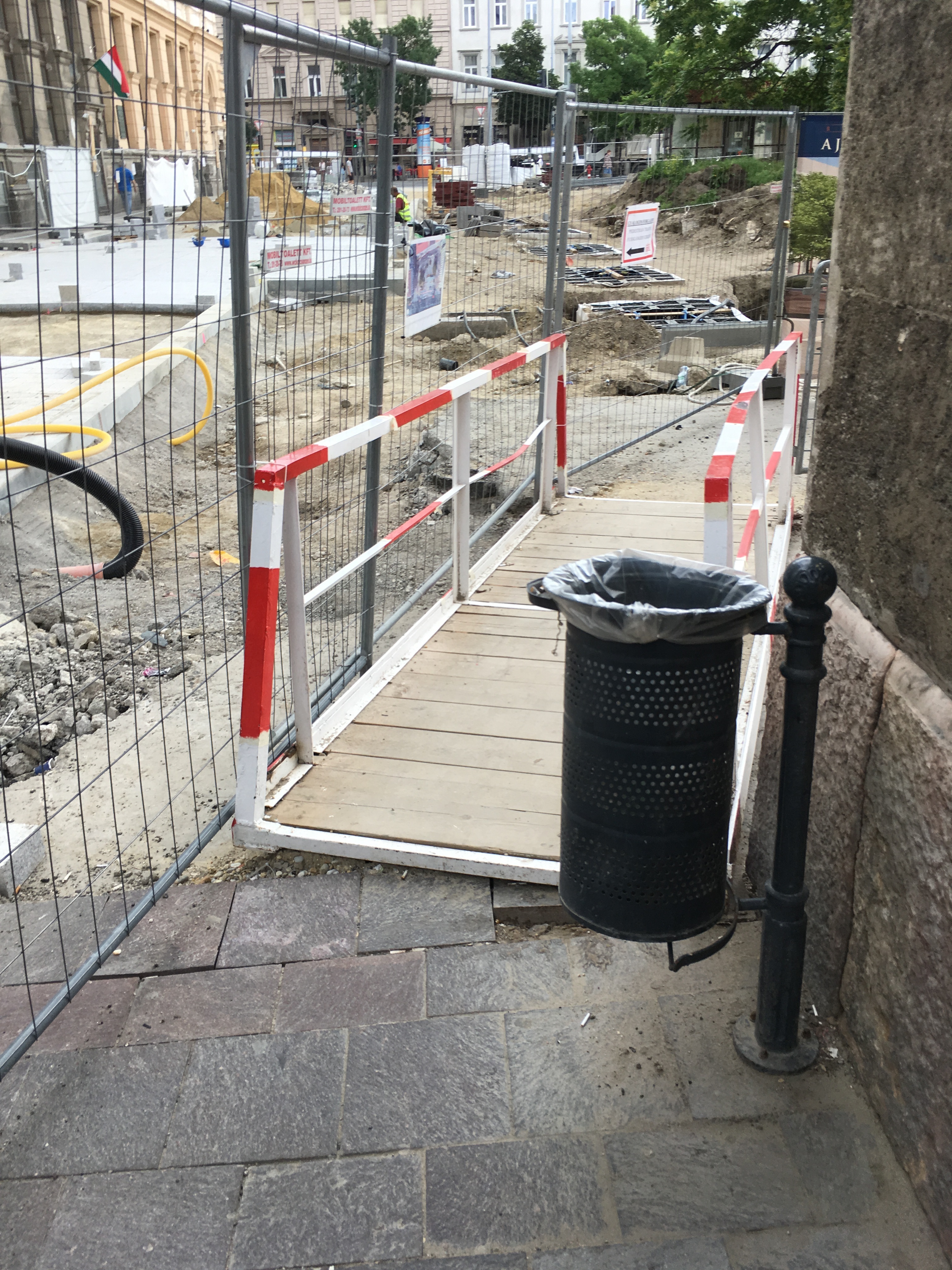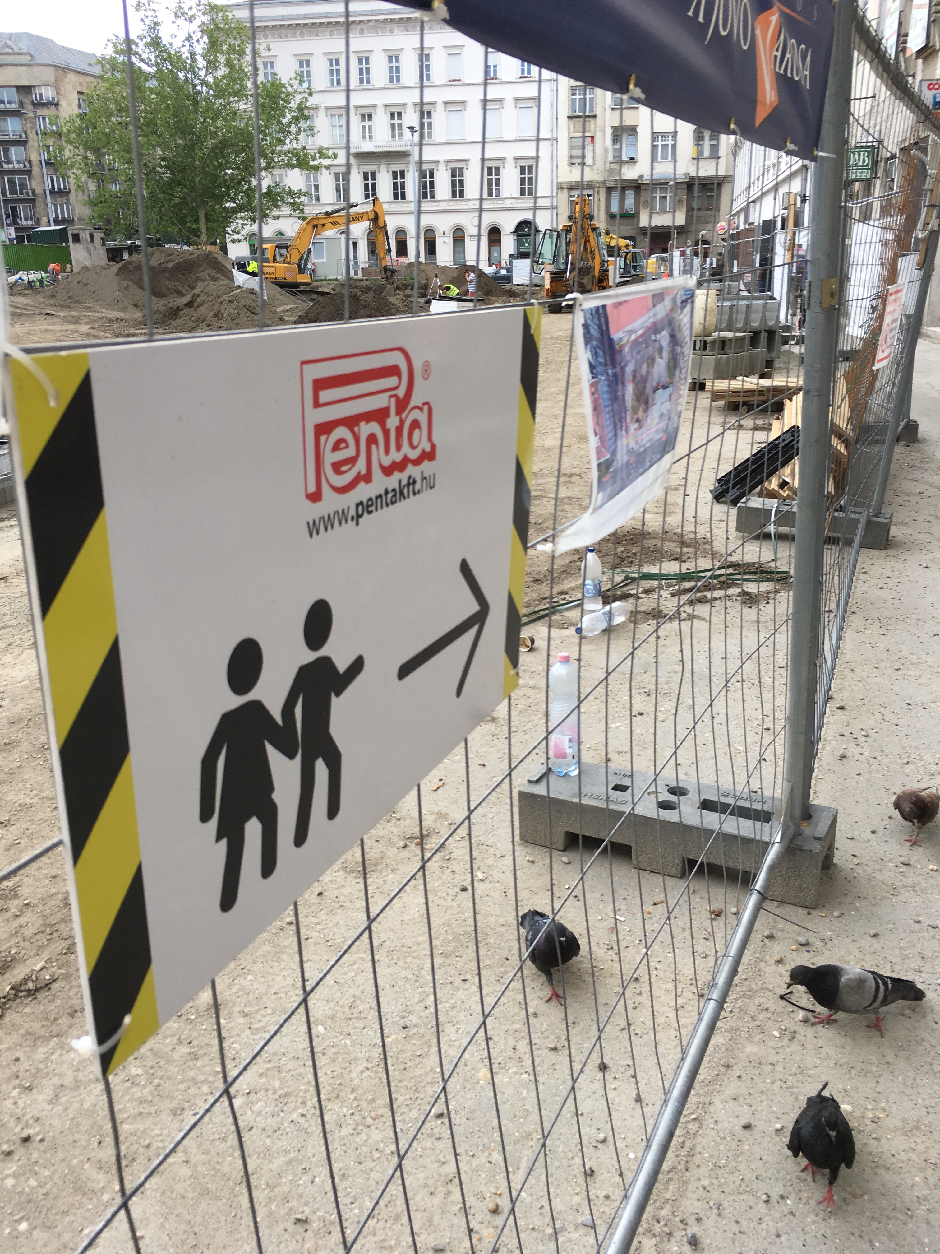 A másik oldalról nézve rosszabbnak tűnik a helyzet, de ha valaki mégis átmerészkedik a metróállomás oldalába, viszonylag könnyen körbejárhatja a teret. A gyalogos forgalom irányát táblákkal jelzik, a veszélyesebb szakaszokat pedig rendre elzárták a járókelők elől. Ahol szükséges, oda rámpákat is tettek, bár nem mindenhol van elég széles hely ahhoz például, hogy kerekesszékkel, babakocsival kényelmesen át lehessen jutni. Gyalog közlekedve egyedül a por számít igazán zavarónak.