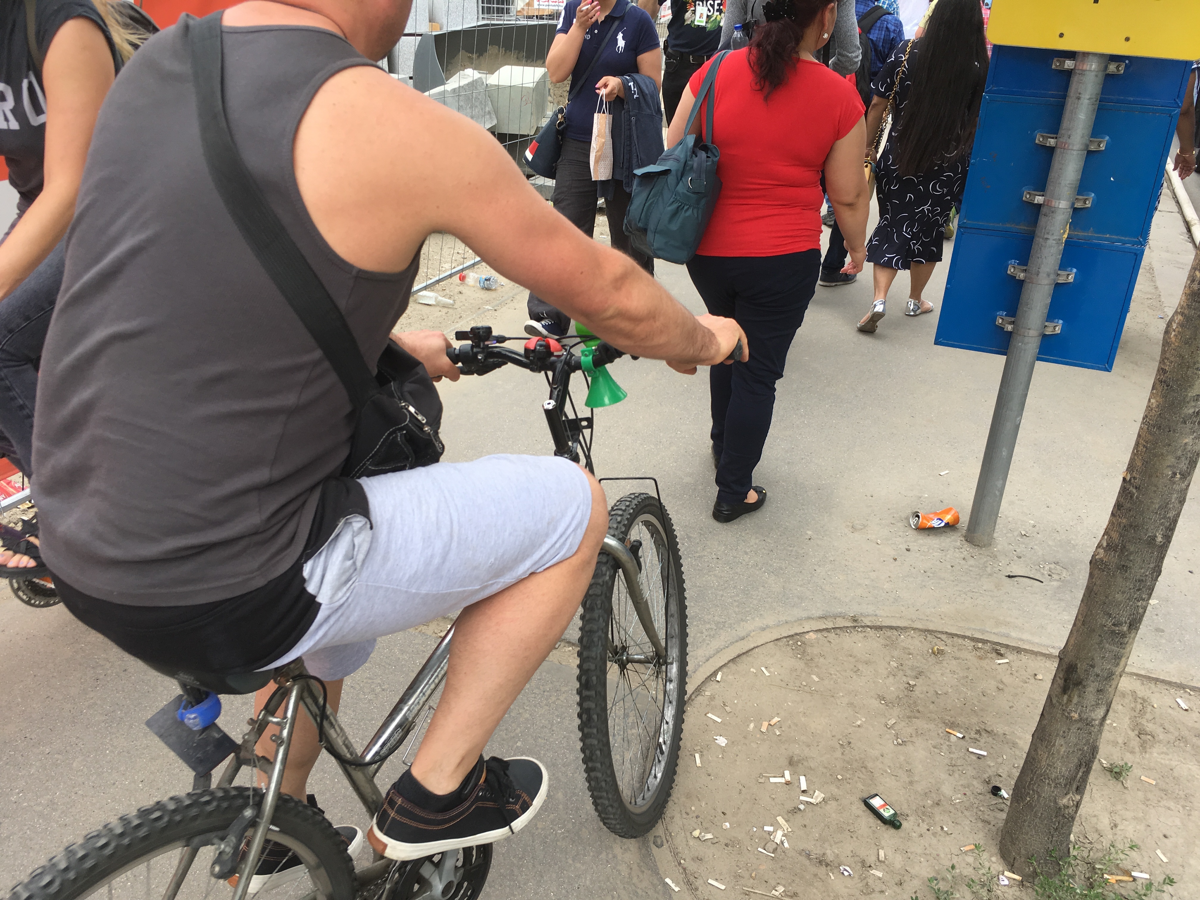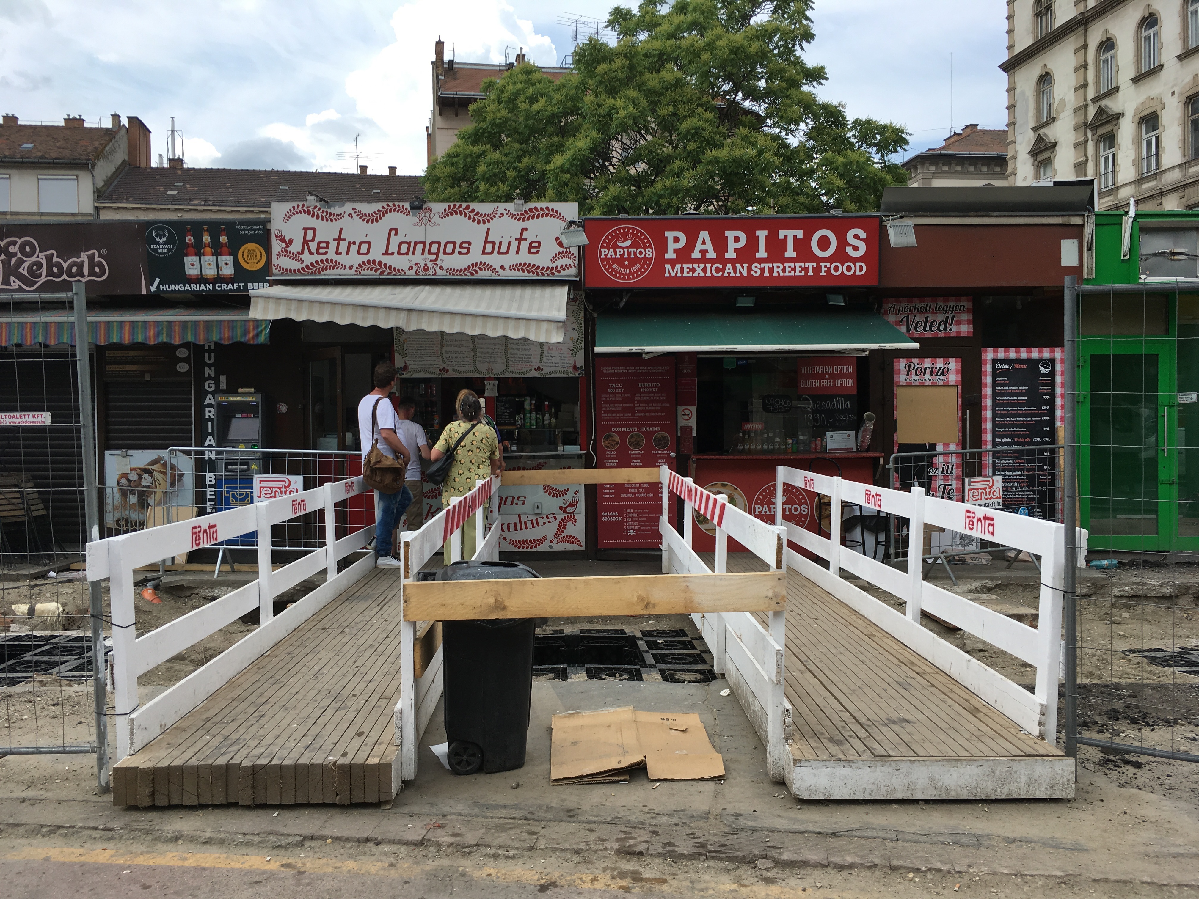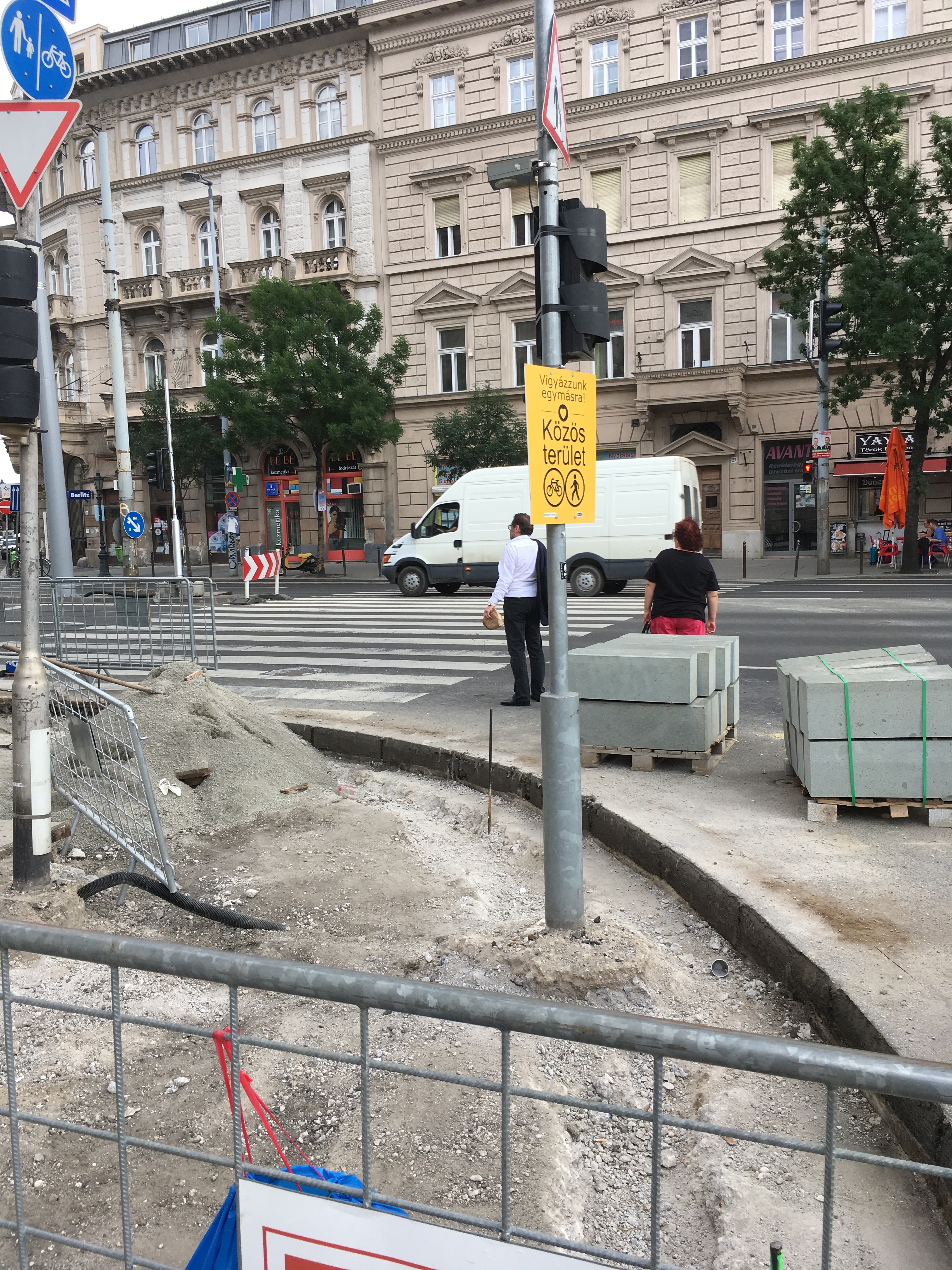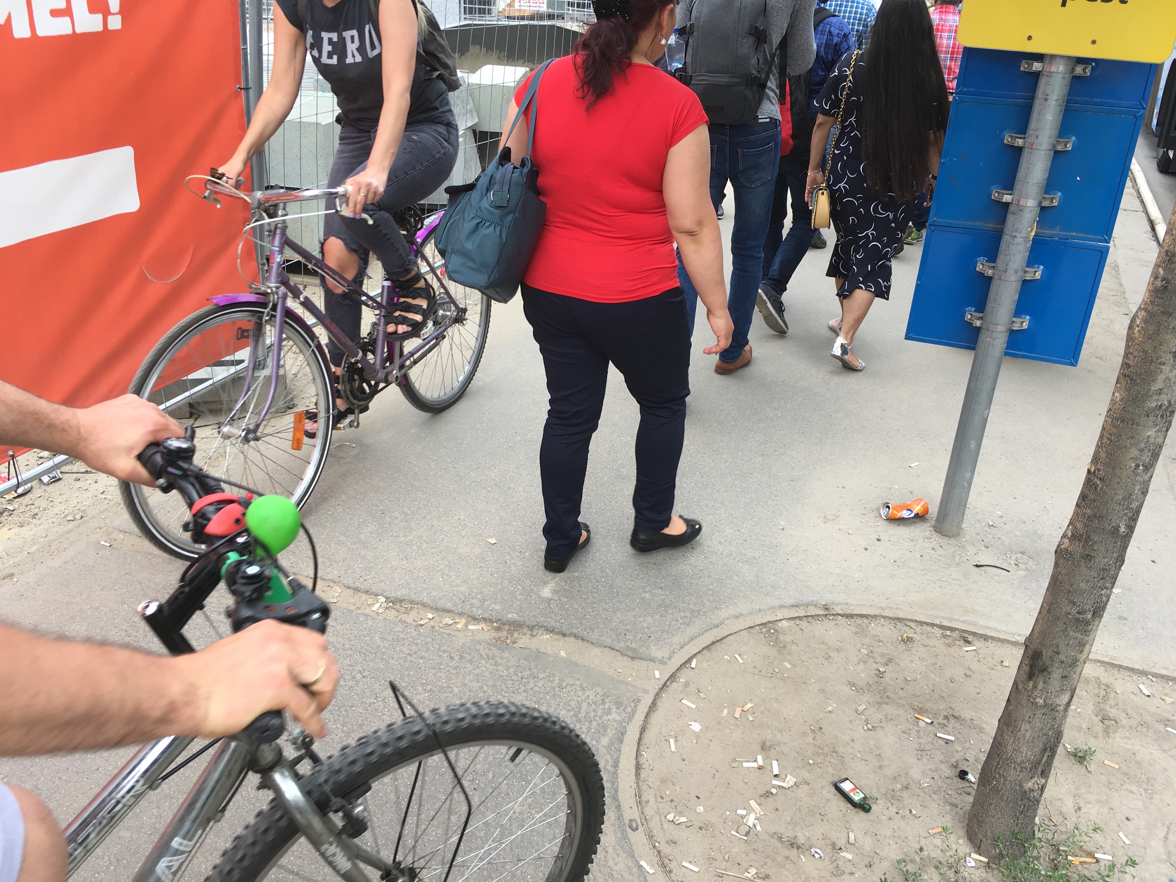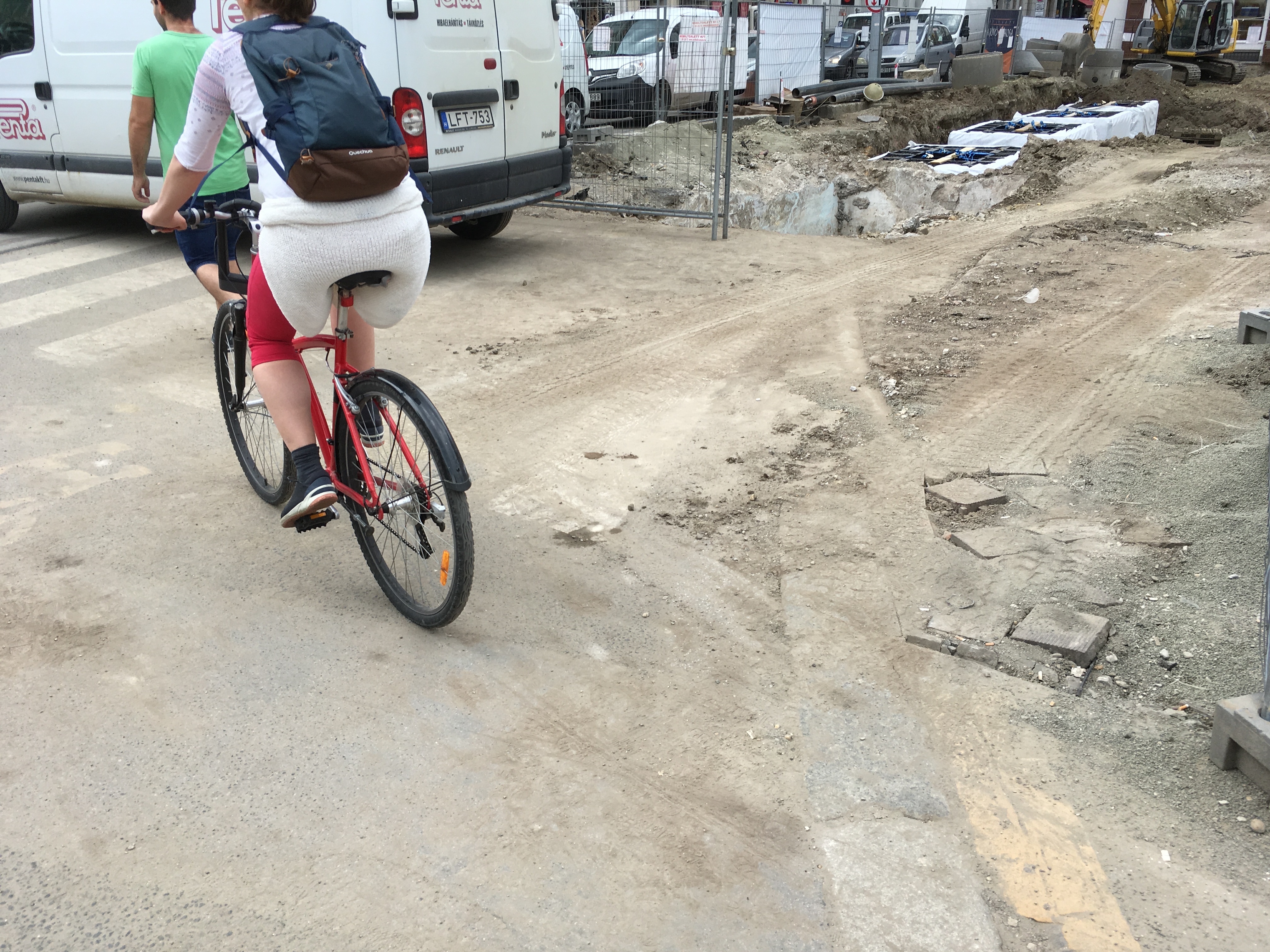 A másik oldalról nézve rosszabbnak tűnik a helyzet, de ha valaki mégis átmerészkedik a metróállomás oldalába, viszonylag könnyen körbejárhatja a teret. A gyalogos forgalom irányát táblákkal jelzik, a veszélyesebb szakaszokat pedig rendre elzárták a járókelők elől. Ahol szükséges, oda rámpákat is tettek, bár nem mindenhol van elég széles hely ahhoz például, hogy kerekesszékkel, babakocsival kényelmesen át lehessen jutni. Gyalog közlekedve egyedül a por számít igazán zavarónak.
