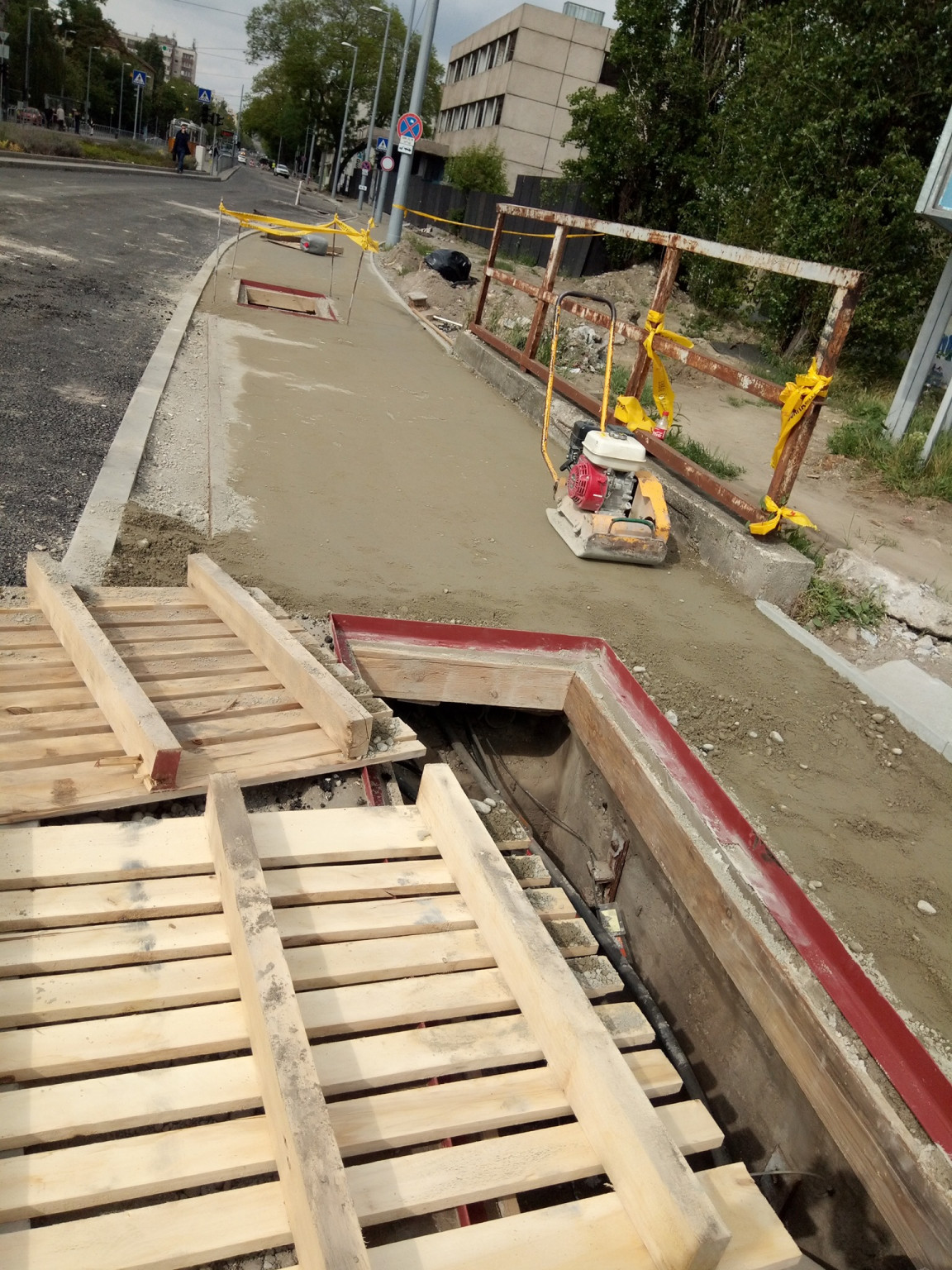 legújabban rárakták az egyiket a felújított járdaszigetre, a másikat meg most aszfaltozzák a járdához.