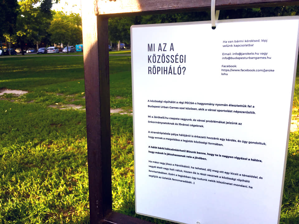 “A pályázat ötlete tavaly született, amikor a Járókelő megkeresett minket egy bejelentéssel, hogy a városligeti strandröplabda pálya évek óta háló nélkül, kihasználatlanul áll. Rögtön beleálltunk a kezdeményezésbe, és a vásárolt hálót, illetve a labdákat a szomszédos Pántlika presszóban helyeztük el megőrzésre, ahonnan bárki, bármikor kölcsönvehette a felszerelést.” – mondta Megyeri Roxi, a BUG projektvezetője