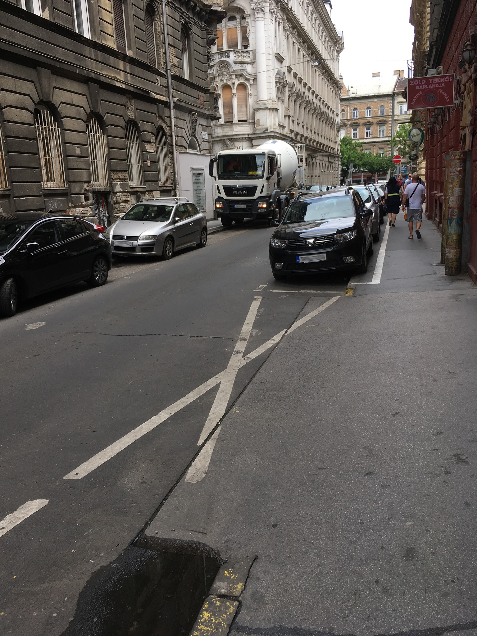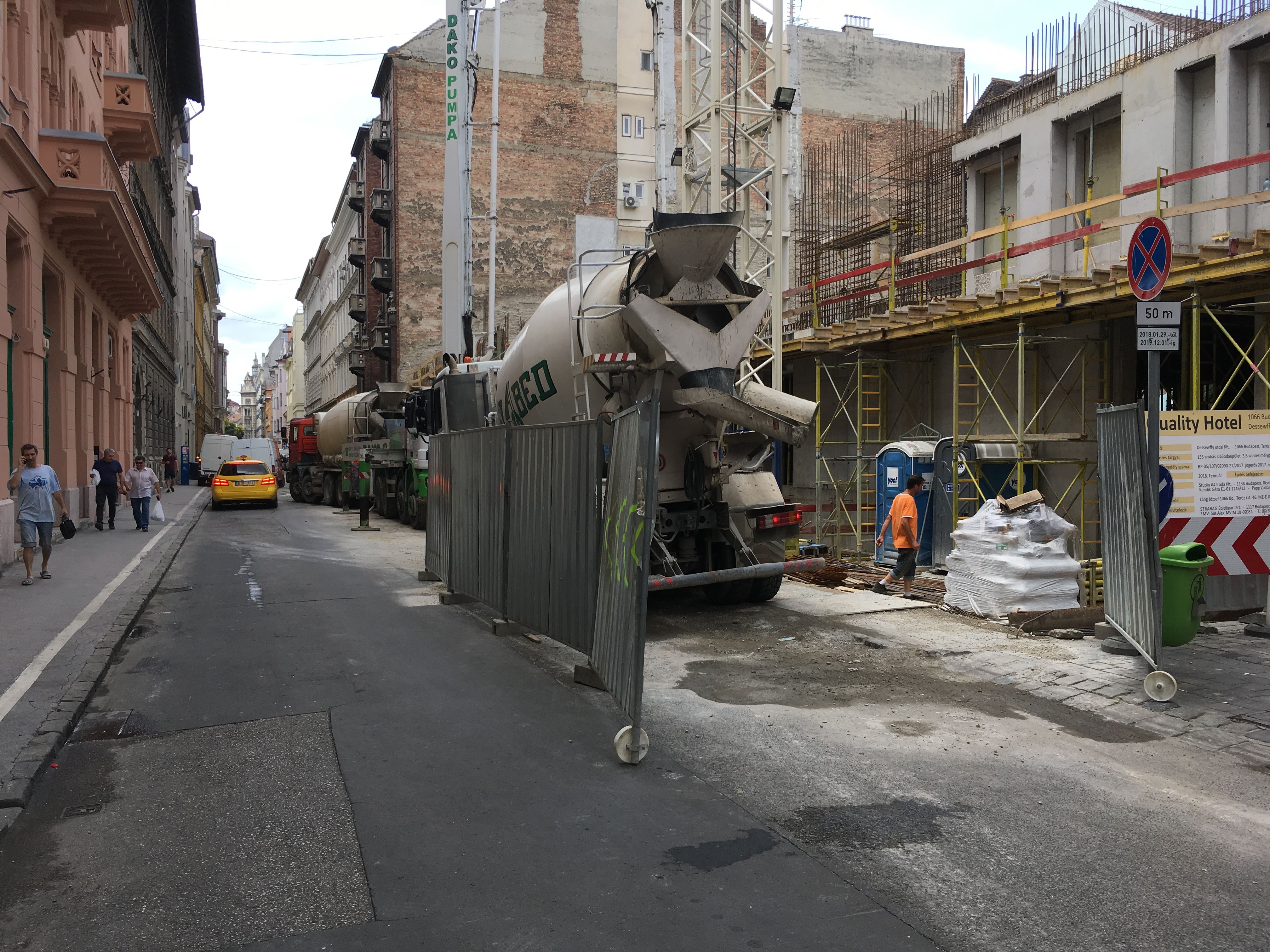 A belváros ráadásul évszaktól függetlenül mindig tele van turistákkal, az említett két építkezést kiszolgáló munkagépek pedig folyamatosan a szűk úttesten manővereznek. A rövid, kevesebb mint 10 perces sétán volt minden: két betonkeverő, az egyik a Jókai sarkon éktelenkedett, a másik tartósan keresztben állt az úttesten. Voltak még tilosban parkoló személyautók és kisteherautók szép számmal. A közterület-felügyelet persze ilyenkor sehol.