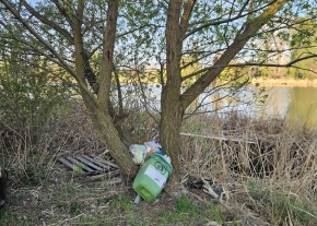 Félredobott szemetes vízparton